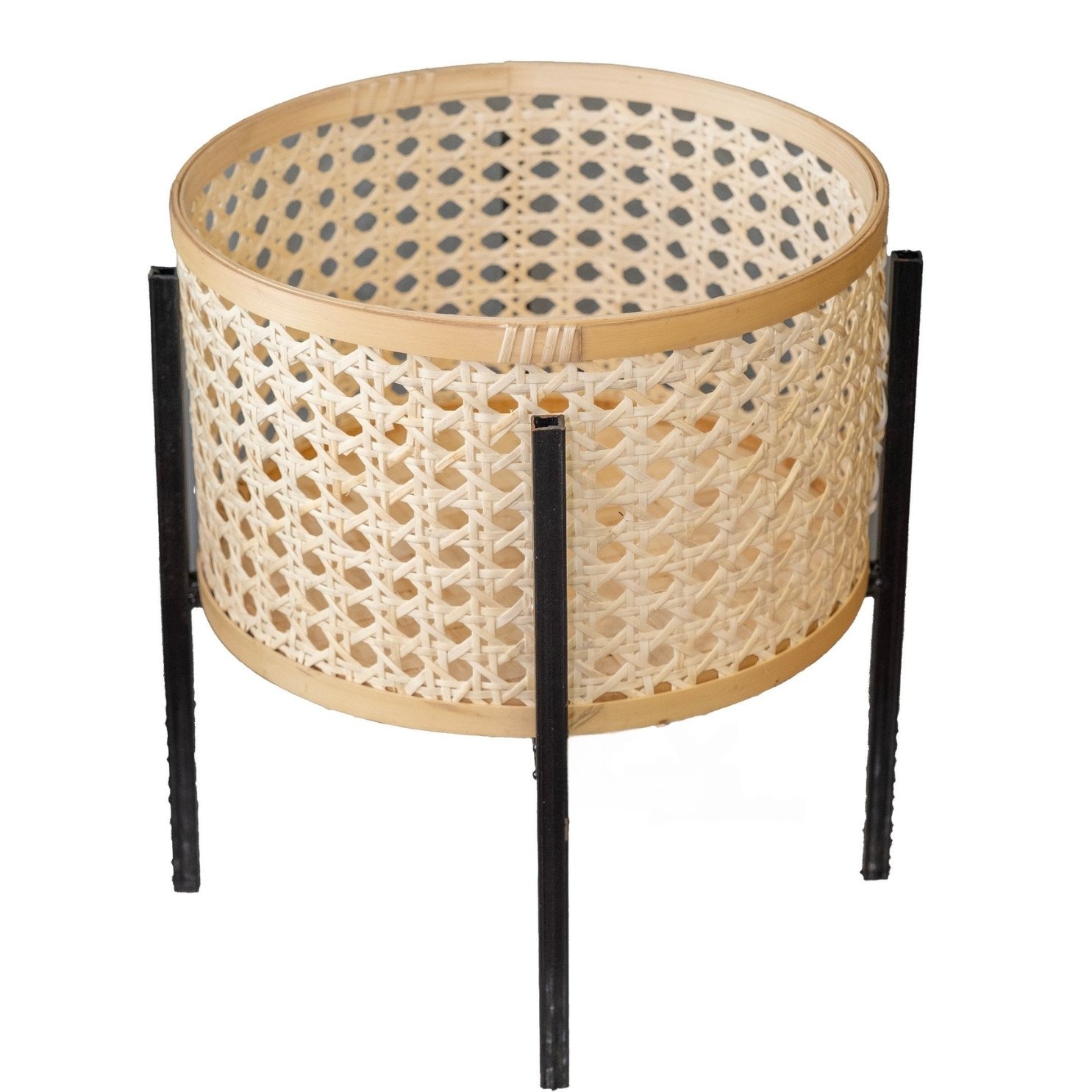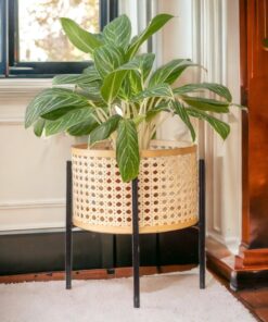 - Chậu trồng cây tròn bằng mây với đáy bằng tre và chân kim loại là một món đồ nội thất trang trí mang phong cách cổ điển, có thể sử dụng cả trong nhà và ngoài trời.
