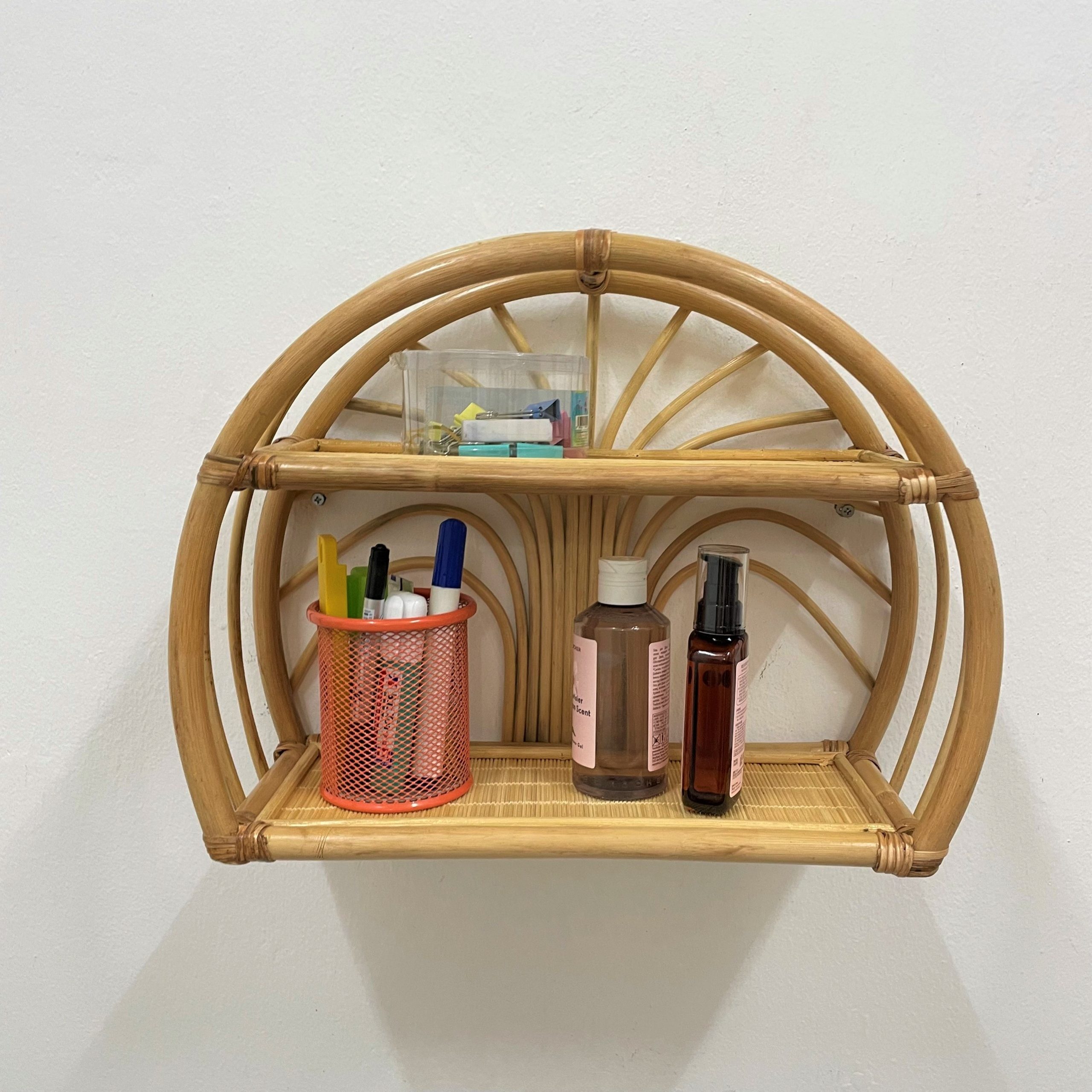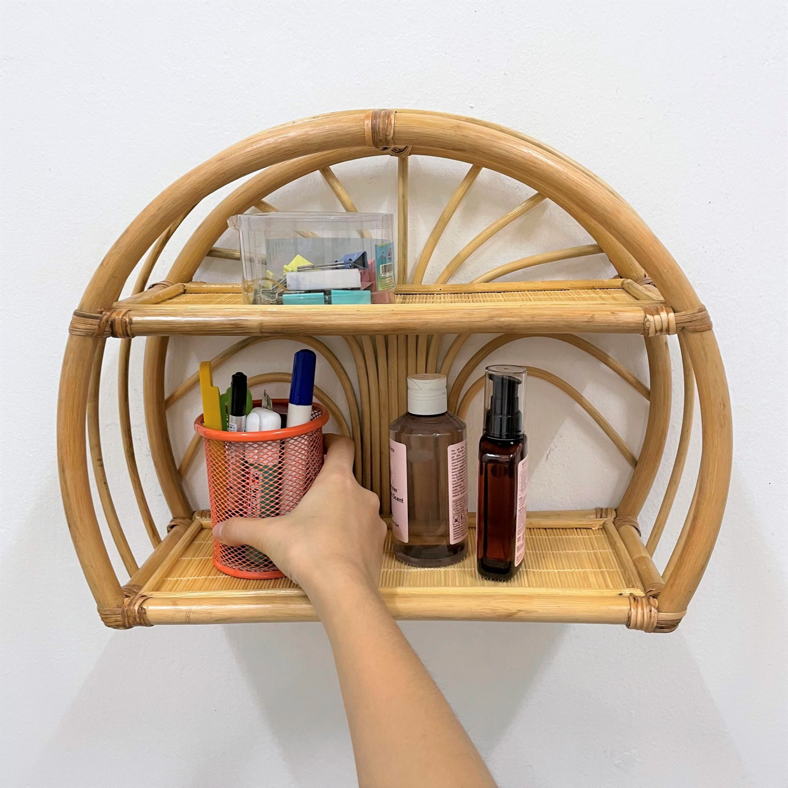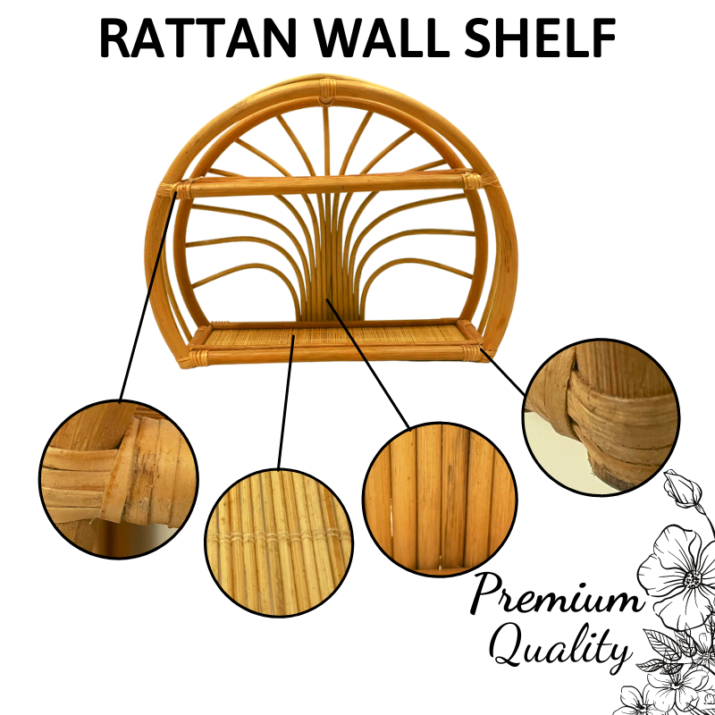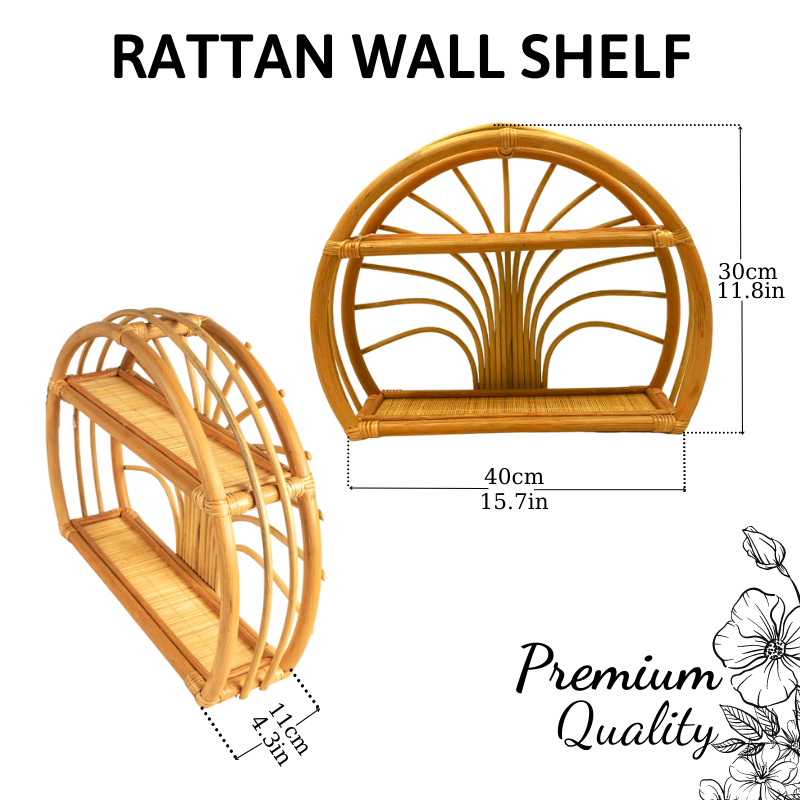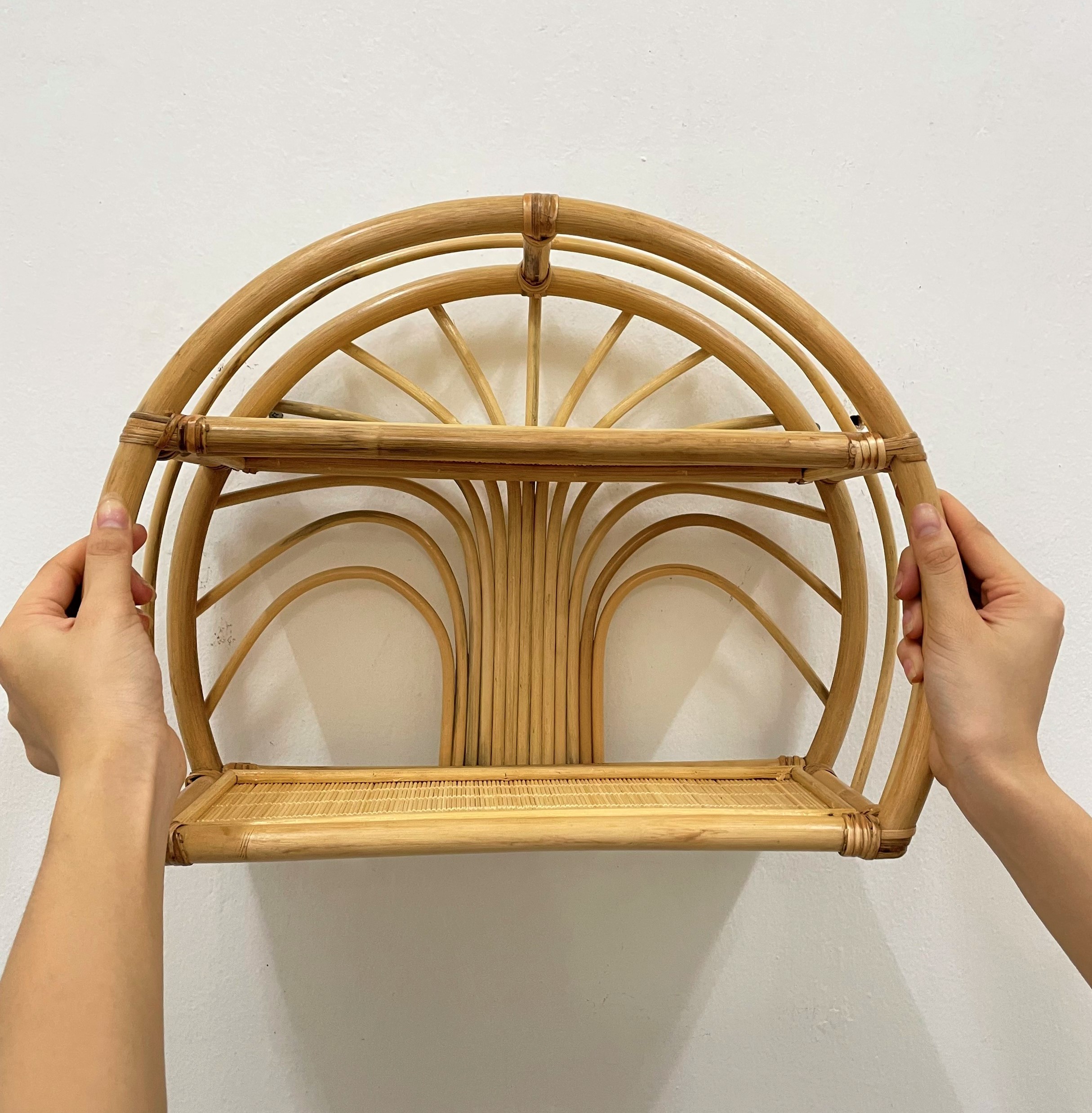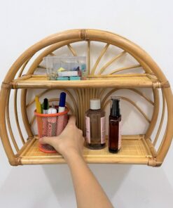 Kệ treo tường hình bán nguyệt 2 tầng bằng mây cổ điển – SG1430