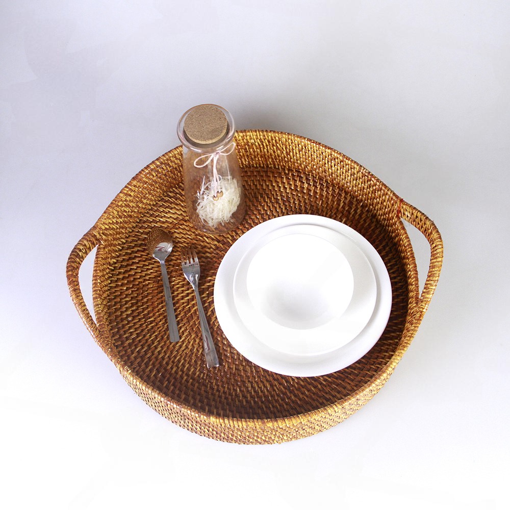 Khay đan thủ công tinh xảo, nghệ thuật và thủ công, tái chế, đây là cách phục vụ lành mạnh và hợp vệ sinh. Hai tay cầm đảm bảo bạn cầm thoải mái và an toàn.